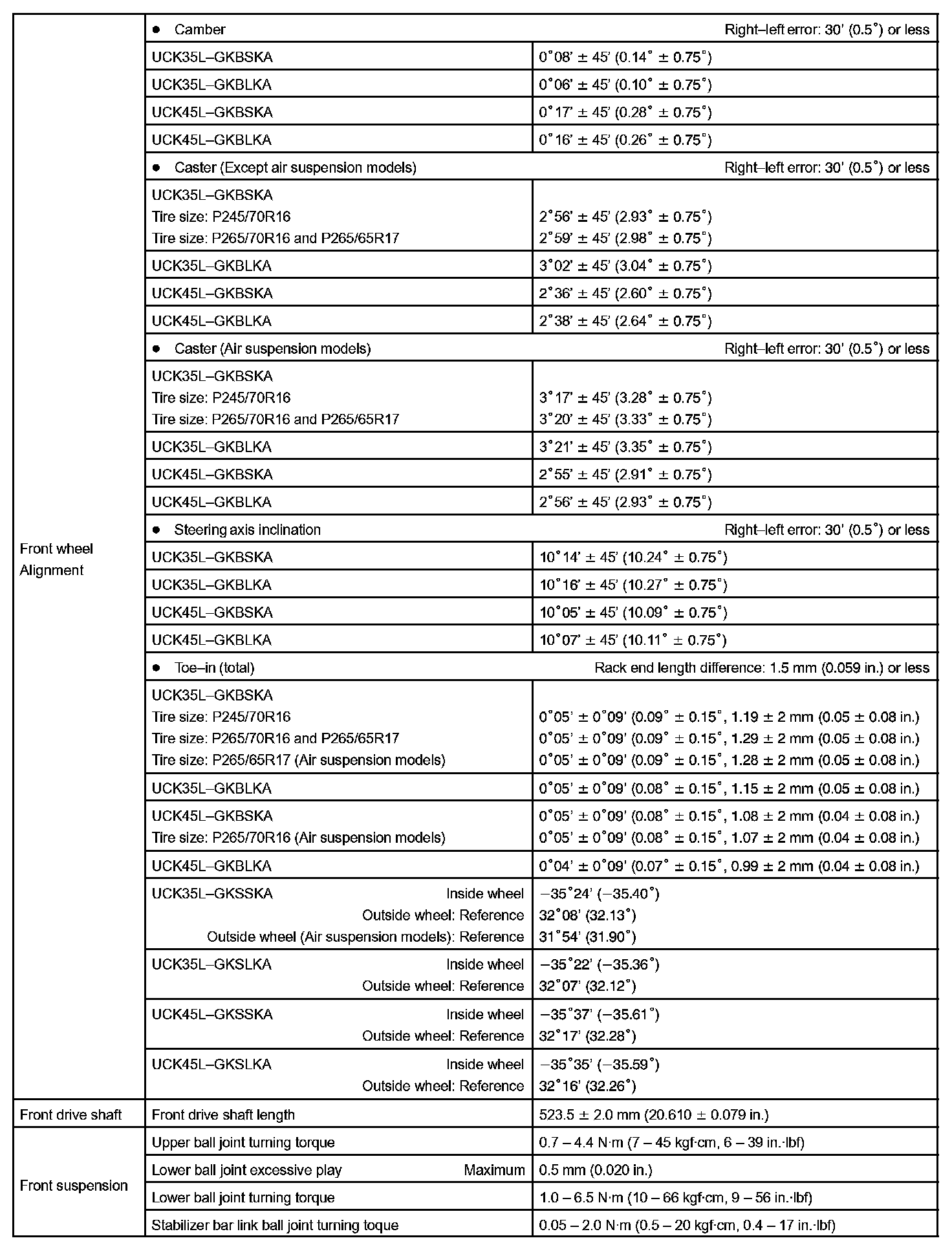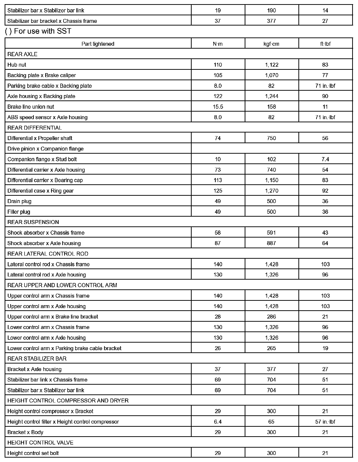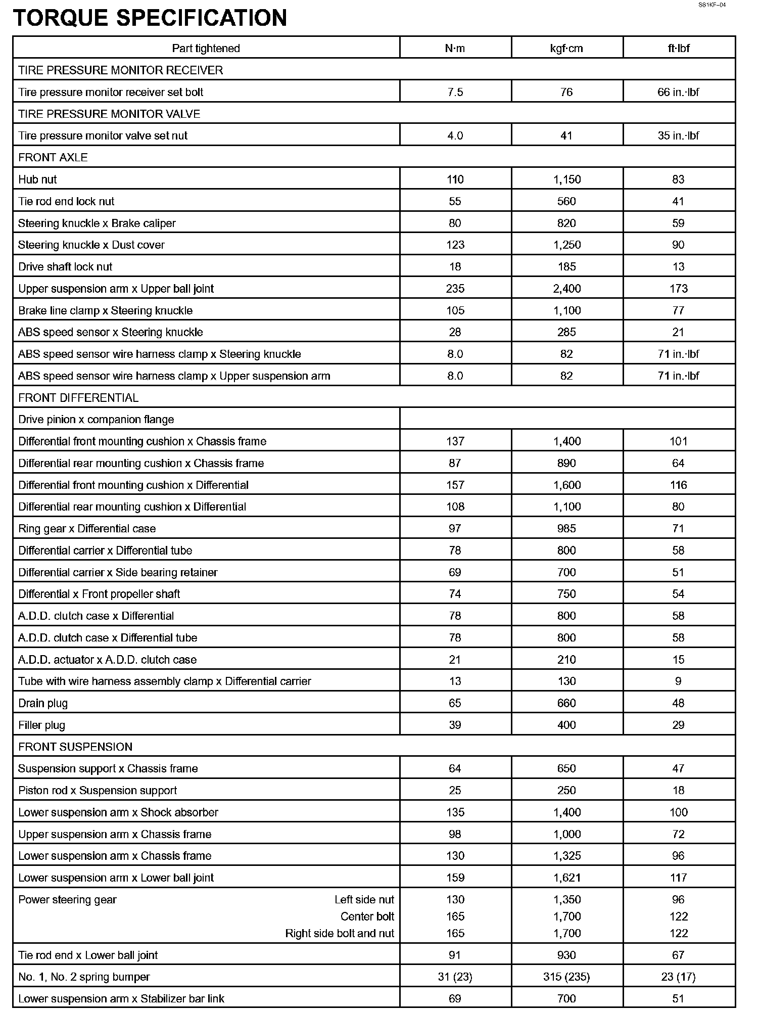 Suspension And Axle - Torque Specification Part 1: