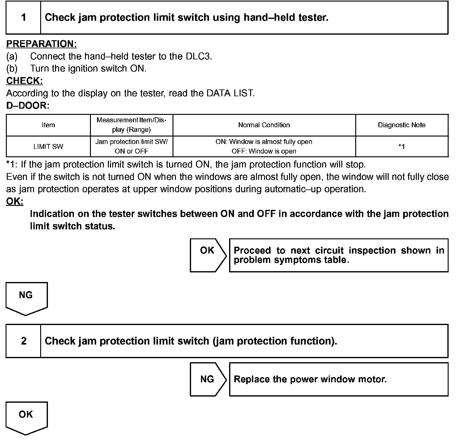 The jam protection limit switch, built in the power window motor, turns off before top dead center. The ECU reads this "OFF" signal and fully closes the window.