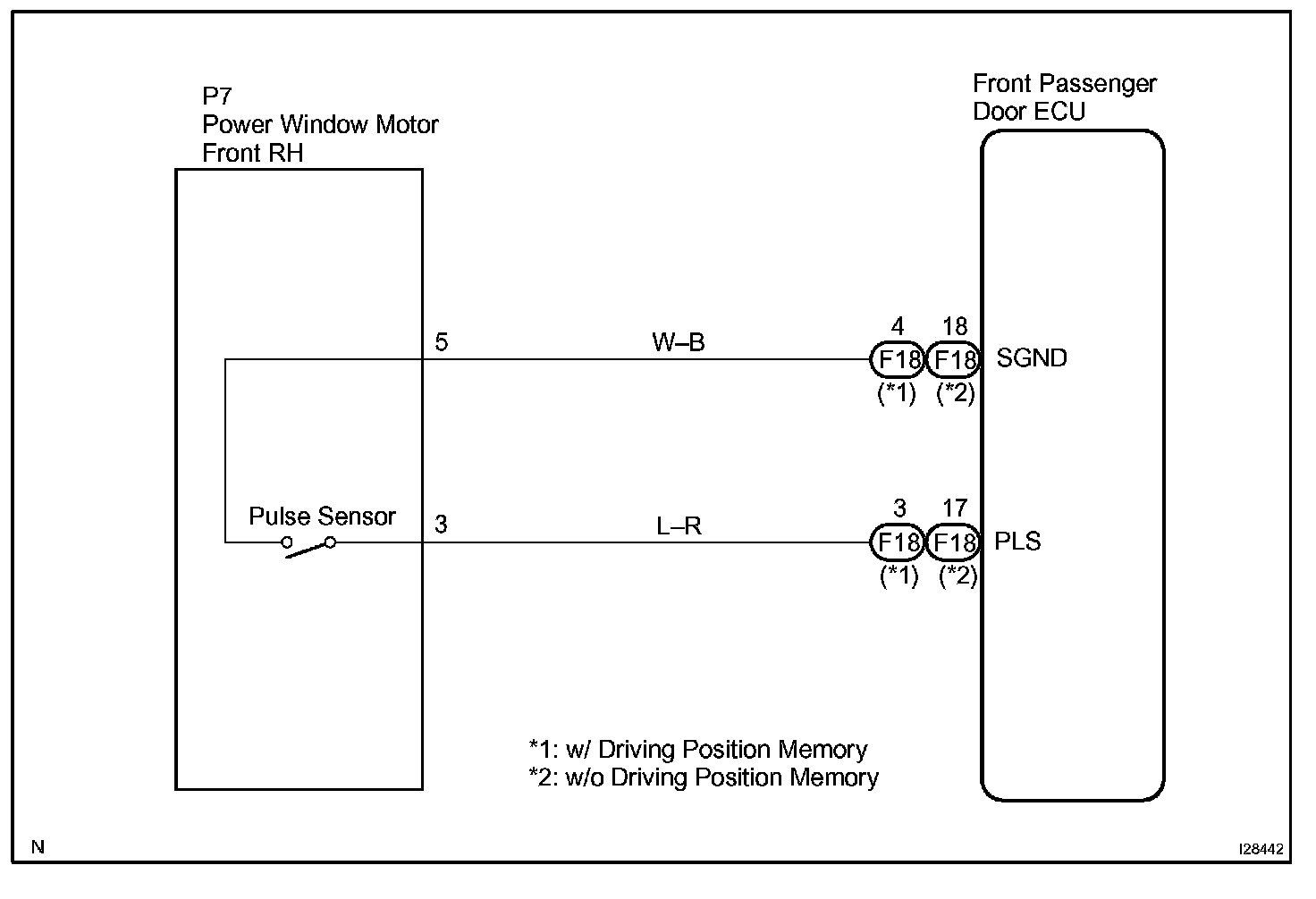 The jam protection pulse sensor, built in the power window motor, outputs a ON/OFF pulse when the motor rotates.