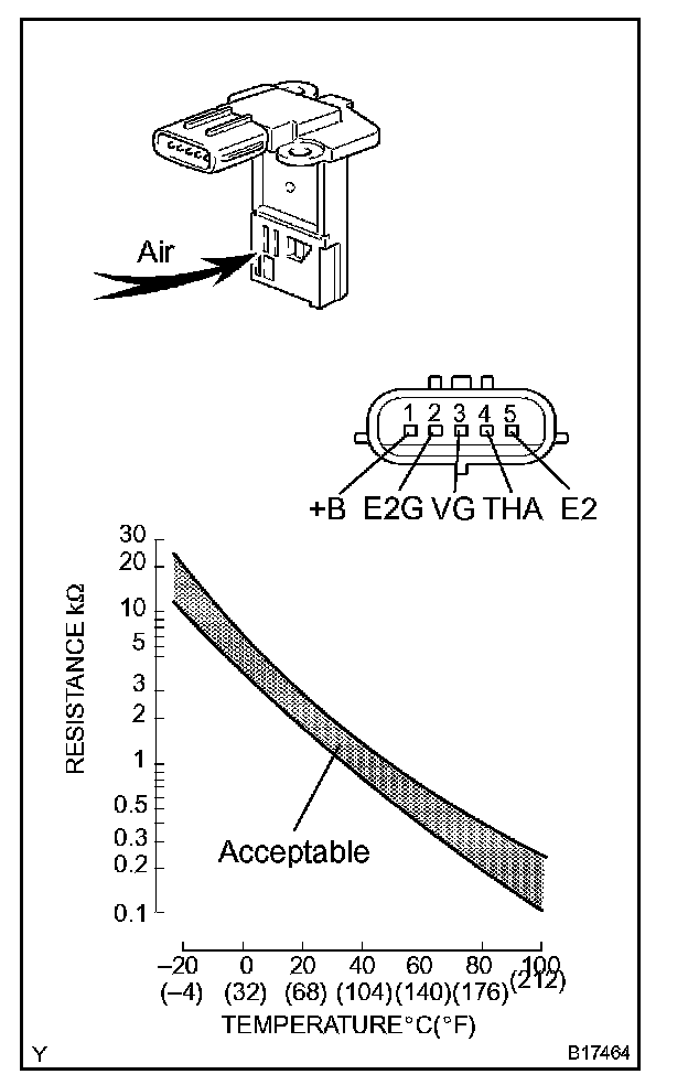 Using an ohmmeter, measure the resistance between terminals (THA) and 5 (E2).