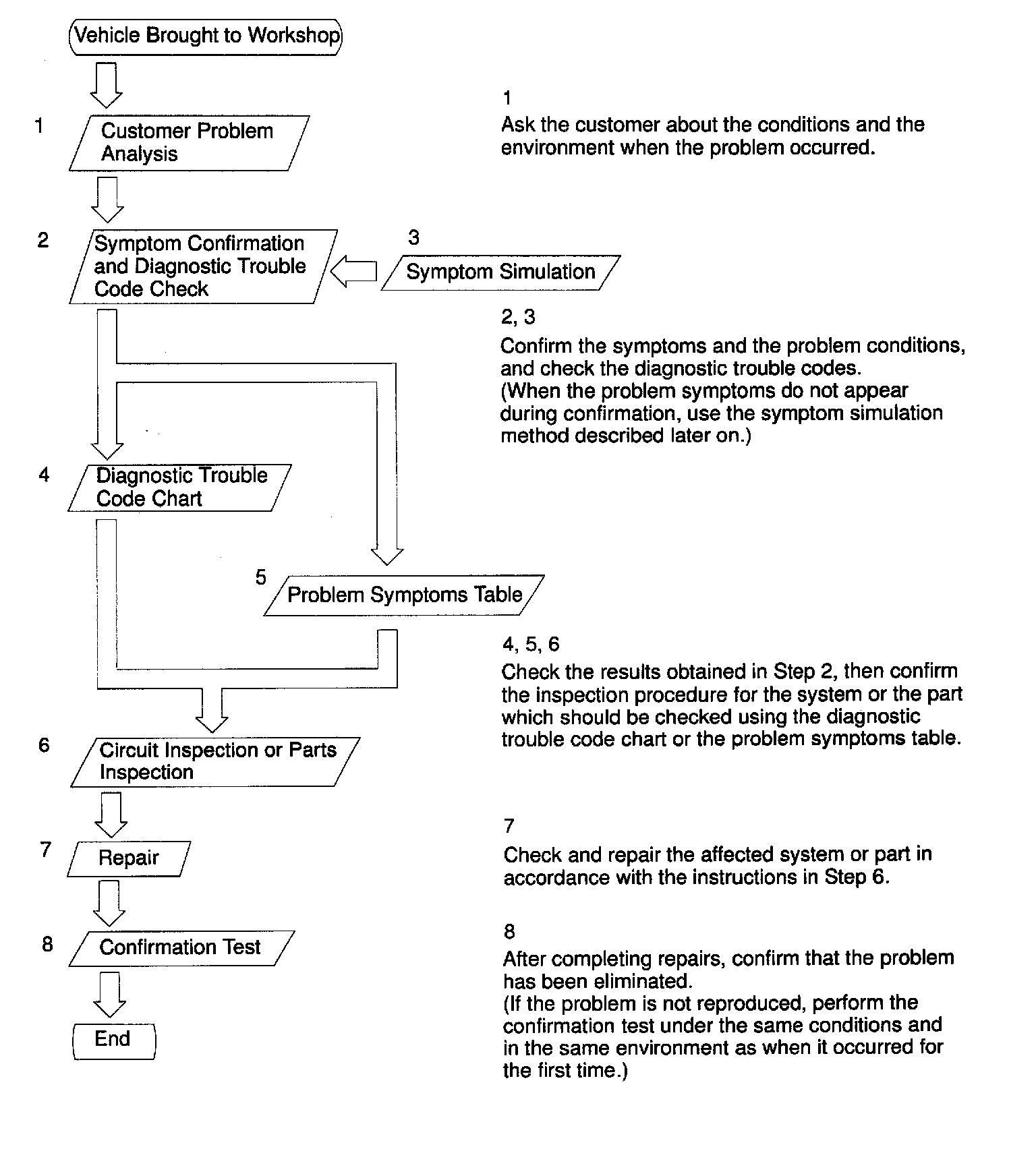 HOW TO PROCEED WITH TROUBLESHOOTINGCarry out troubleshooting in accordance with the procedure given. Here, only the basic procedure is shown. Details are provided in Diagnostics section, showing the most effective methods for each circuit. Confirm the troubleshooting procedures first for the relevant circuit before beginning troubleshooting of that circuit.