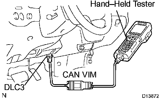 1. Connect a hand-held tester to the Controller Area Network Vehicle Interface Module (CAN VIM). Then connect the CAN VIM to the Date Link Connector 3 (DLC3)