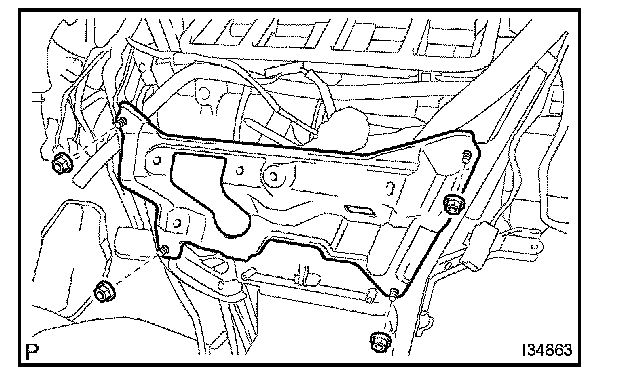 b. Remove the 4 nuts and the instrument panel bracket No.5.