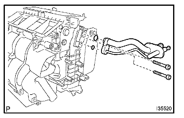 a. Using a hexagon wrench 4.0 mm (0.15 in.), remove the 2 hexagon bolts and the air conditioning tube assembly.b.Remove the 2 O-rings from the air conditioning tube assembly.
