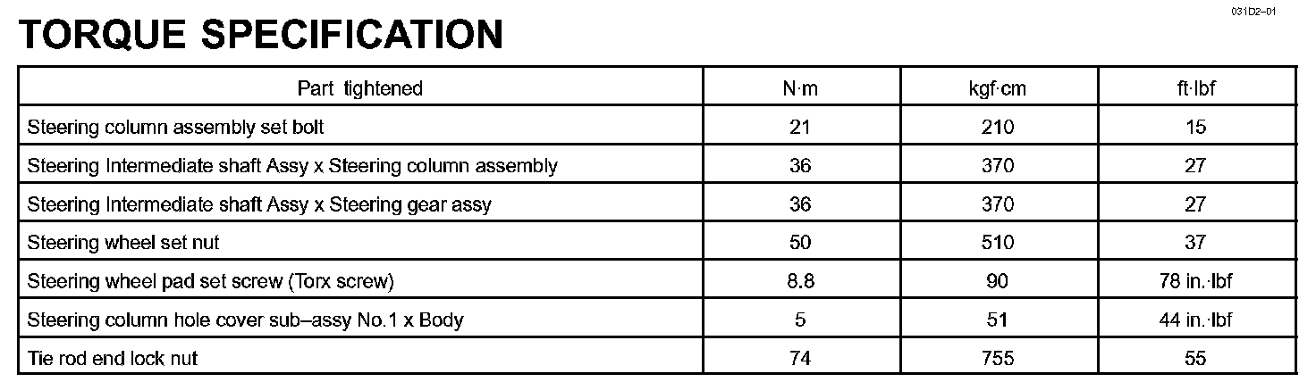 Steering Column - Torque Specification:
