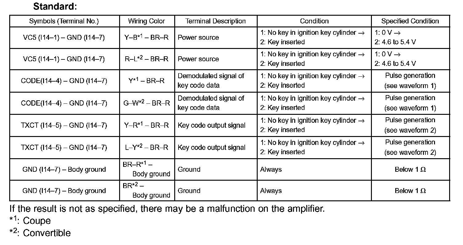 TERMINALS OF ECU1. CHECK TRANSPONDER KEY AMPLIFIER