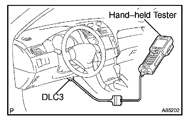 HINT: Connect the cable of the hand-held tester to the DLC3, turn the ignition switch ON and attempt to use the hand-held tester. If the screen displays the message UNABLE TO CONNECT TO VEHICLE, there is a problem either with the vehicle or with the tester.
