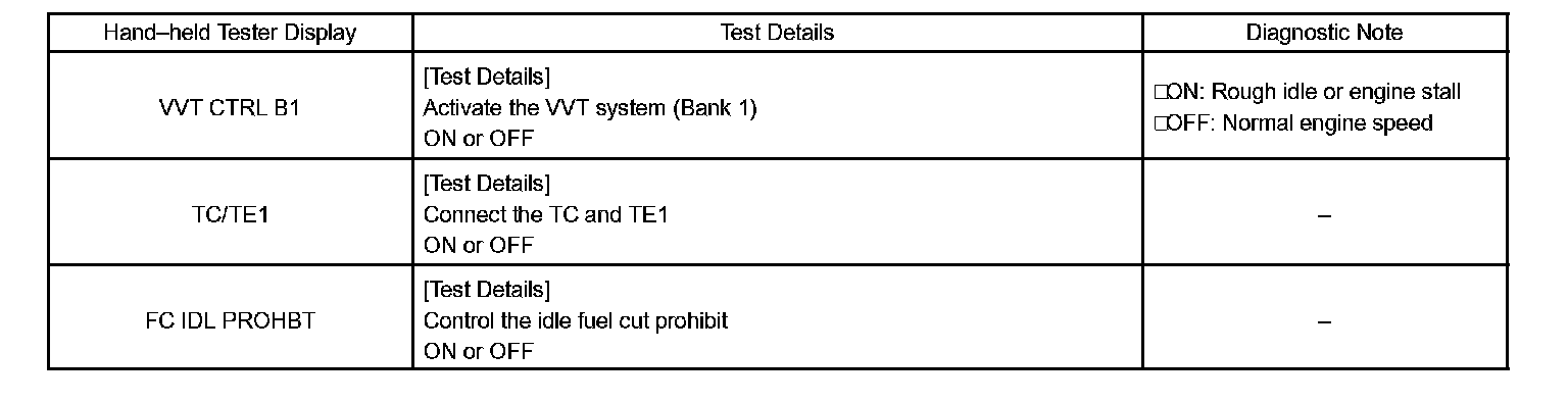 ACTIVE TESTHINT: Performing the hand-held tester's ACTIVE LIST allows relay, VSV, actuator and other items to be operated without removing any parts. Performing the ACTIVE LIST early in troubleshooting is one way to save time.