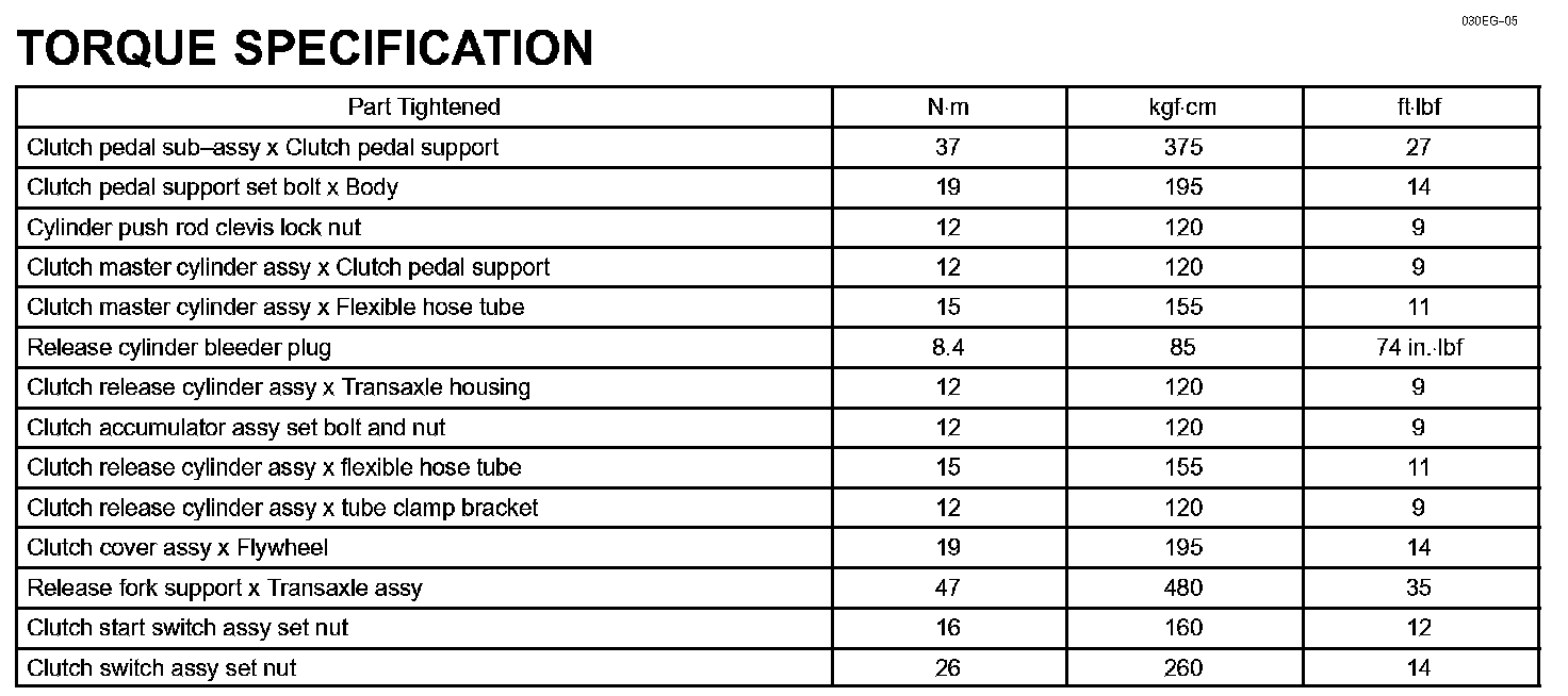 Clutch - Torque Specification: