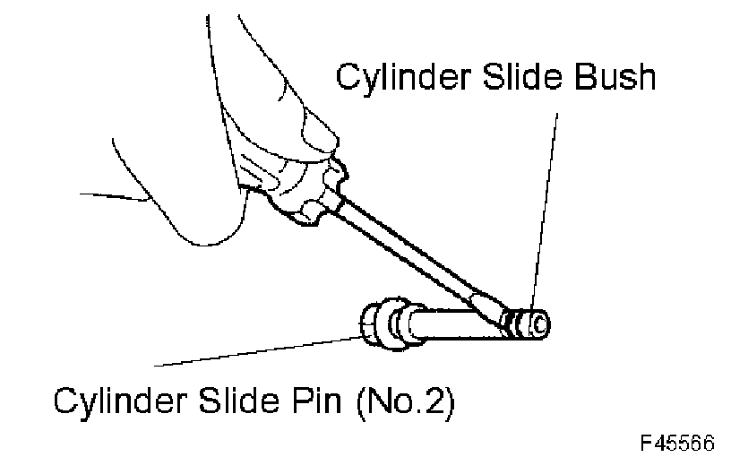 b. Install the cylinder slide bush to the bottom side of the front disc brake cylinder slide pin (No.2).