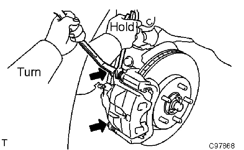 a. Remove the 2 disc brake pads with anti squeal shims from the front disc brake cylinder mounting LH.
