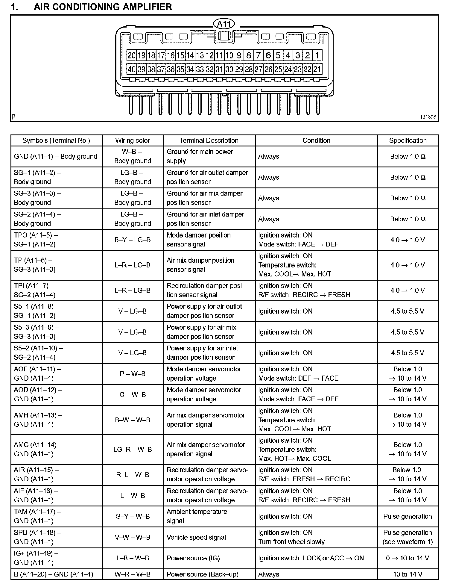 Waveform 1: Measure the voltage between terminal SPD of the A/C amplifier assy connector and body ground when turning the rear wheel slowly.