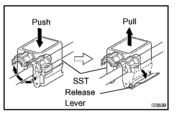 NOTE: Be careful not to deform the hose when pushing down on the SST.