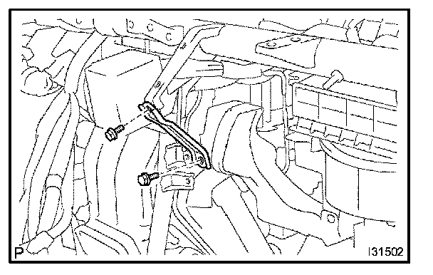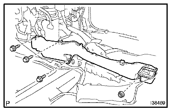 b. Remove the 2 screws, bolt and nut. c.Remove the air duct rear No.2.