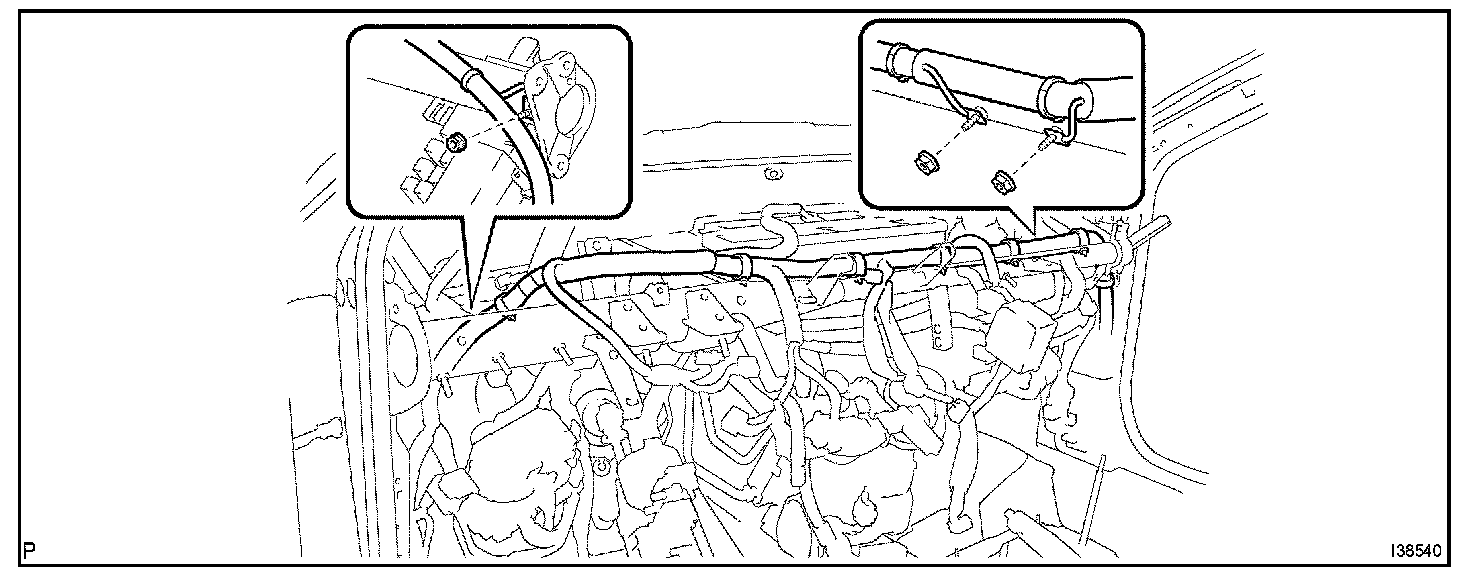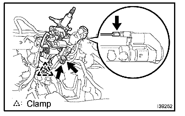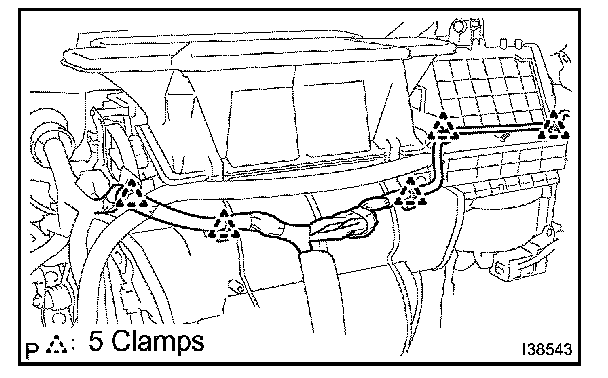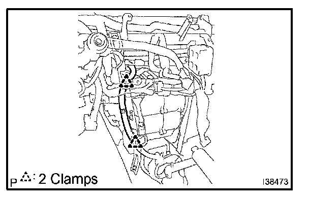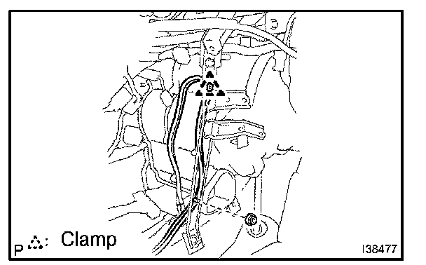HINT: Check the direction of the piping clamp claw and SST by referring to the illustration shown on the caution label.