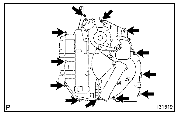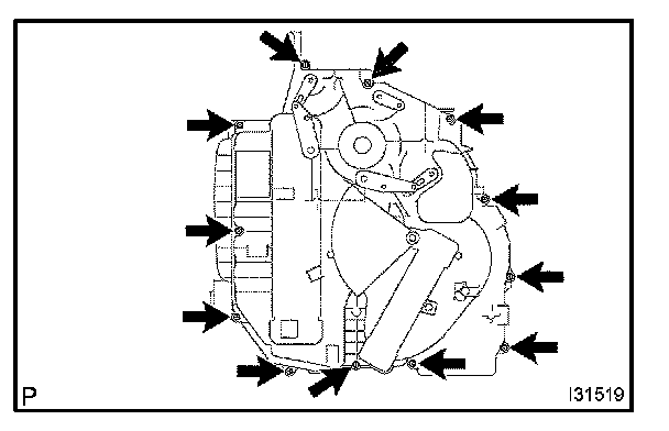 b. Remove the cooler evaporator sub-assembly No.1 from the heater case RH.