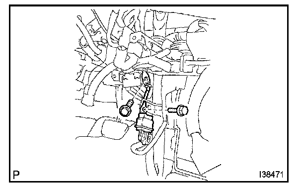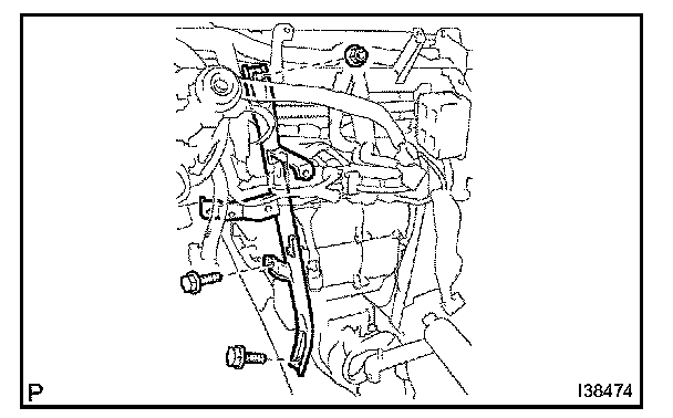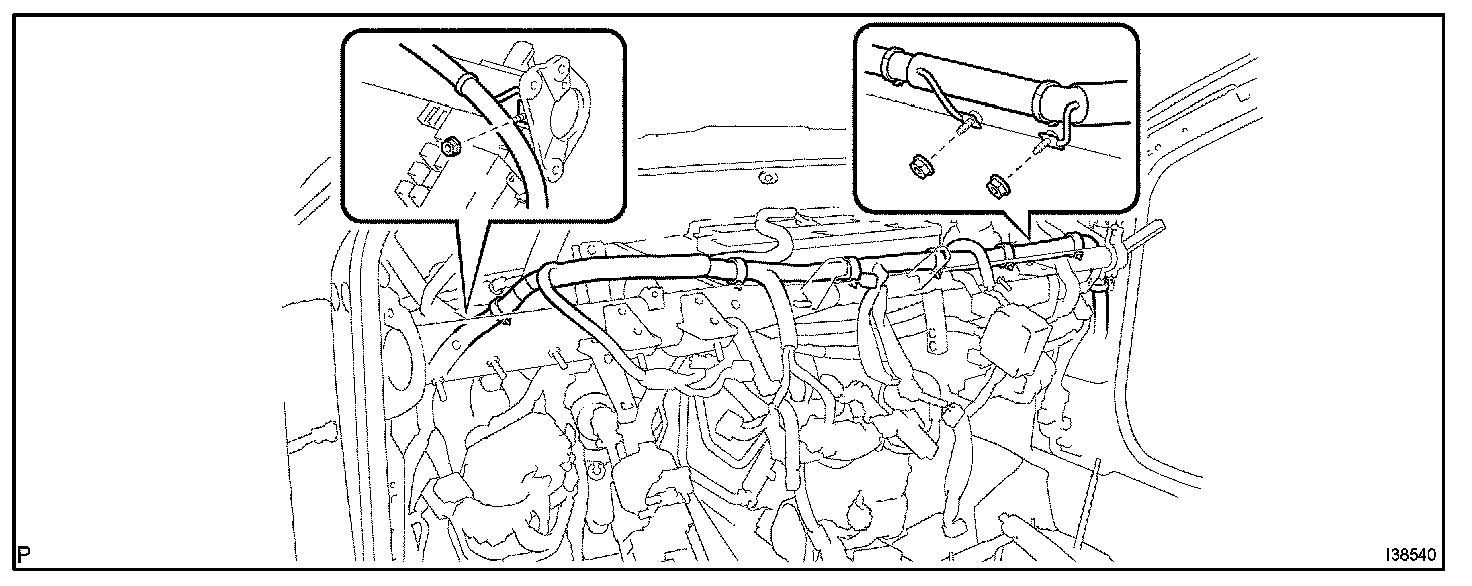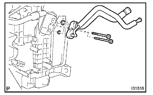 b. Using a hexagon wrench 4 mm (0.16 in.), remove the 2 hexagon bolts and air conditioning tube assembly.