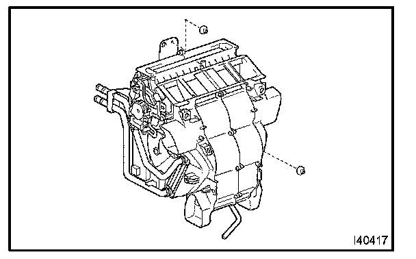 c. Remove the 2 nuts and air conditioning radiator assembly.