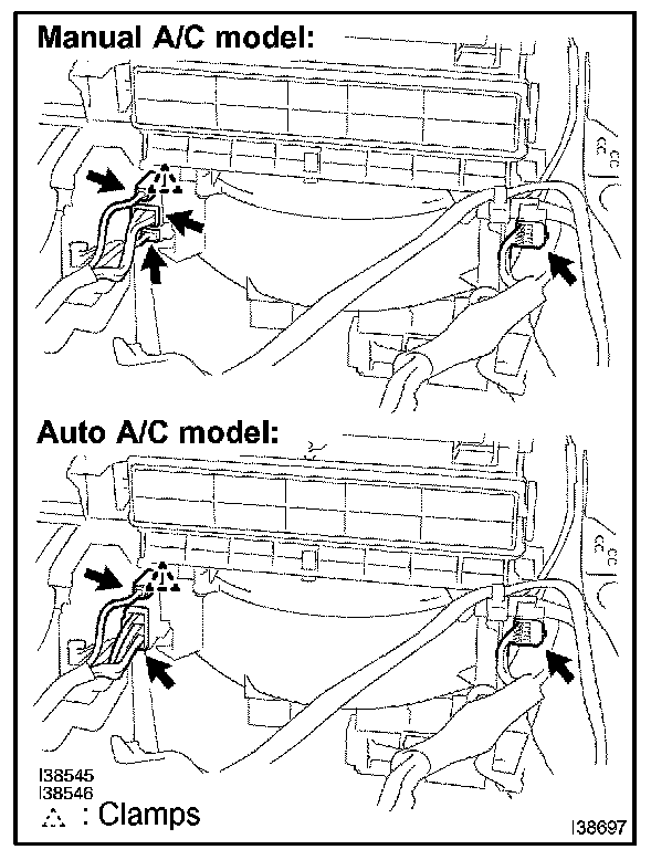 a. Release the 2 fitting claws and remove the evaporator temperature sensor (cooler thermistor No.1).