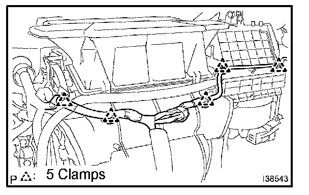 c. Install the cooler refrigerant suction hose No.1 and piping clamp.