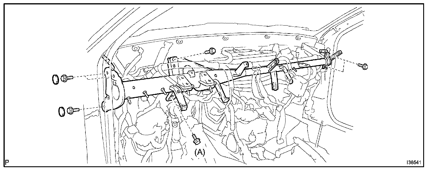 a. Install the instrument panel reinforcement with the 7 bolts and 3 caps.