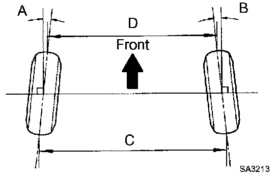 - If toe-in is not within the specified range, adjust it at the rack ends.