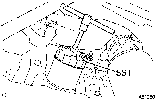 a) Using SST, remove the oil filter.