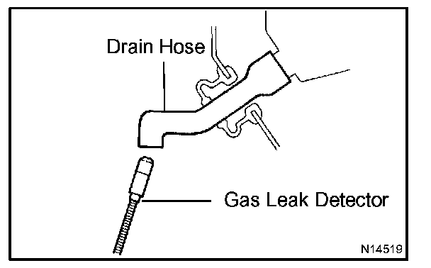 - When bringing the gas leak detector close to the drain hose, make sure that the gas leak detector does not react to the volatile gases.
