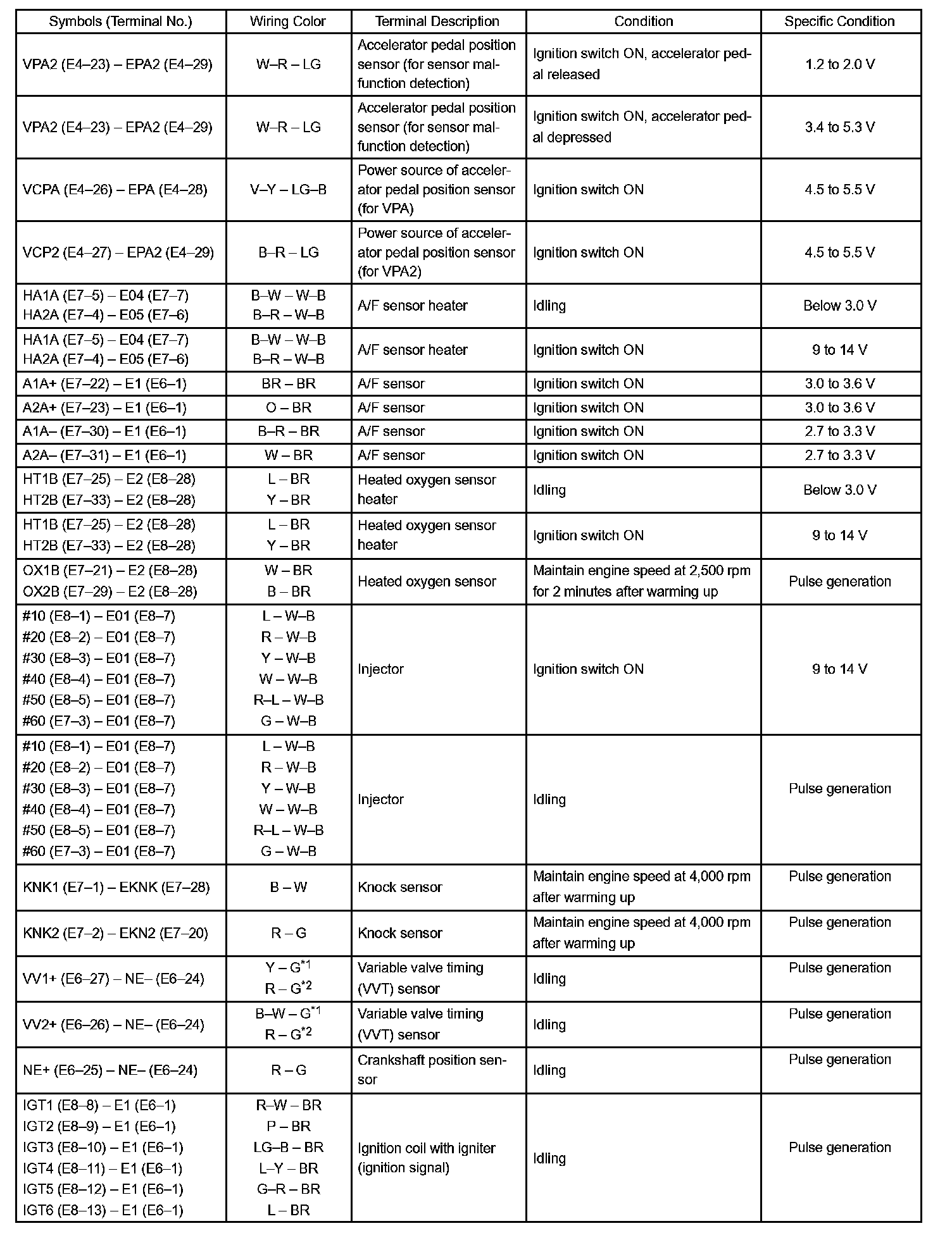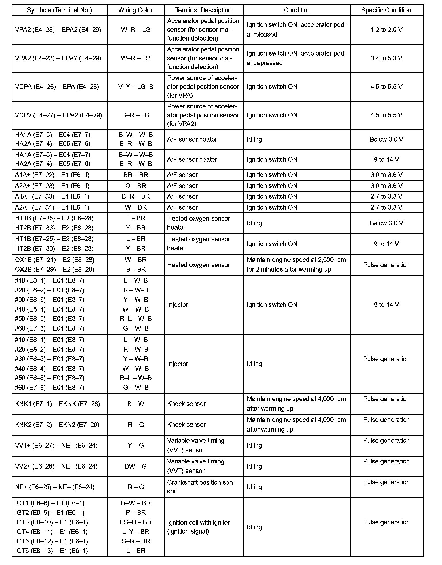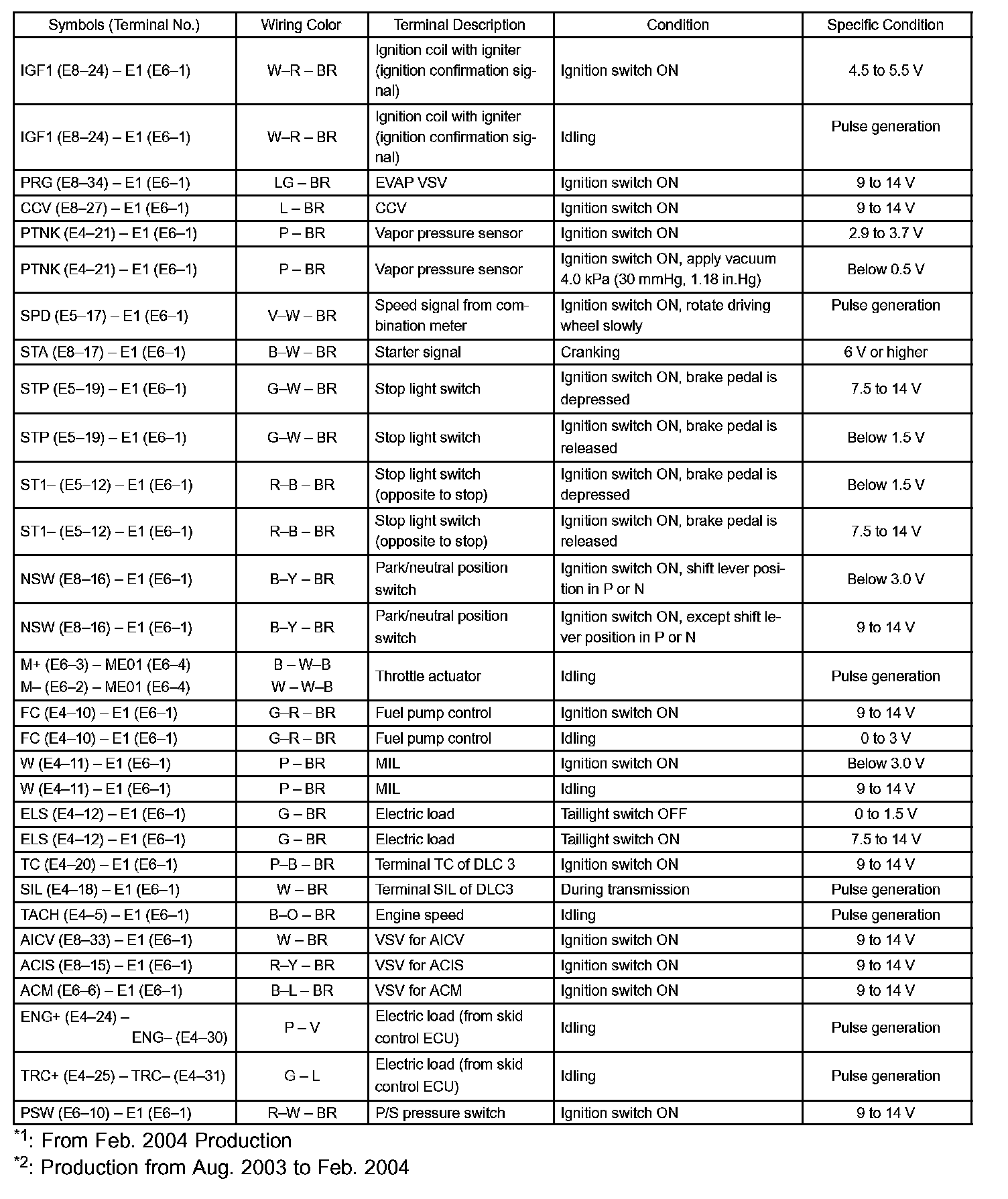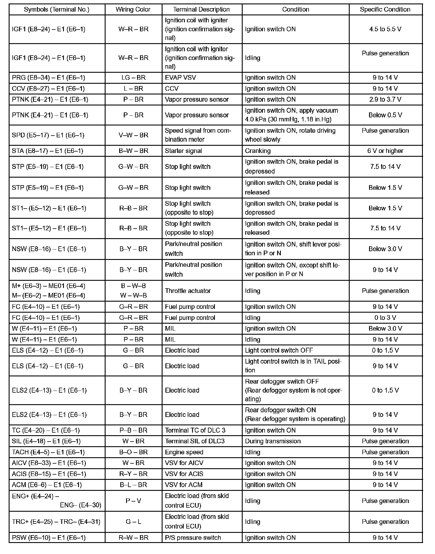 Pinout Values and Diagnostic Parameters