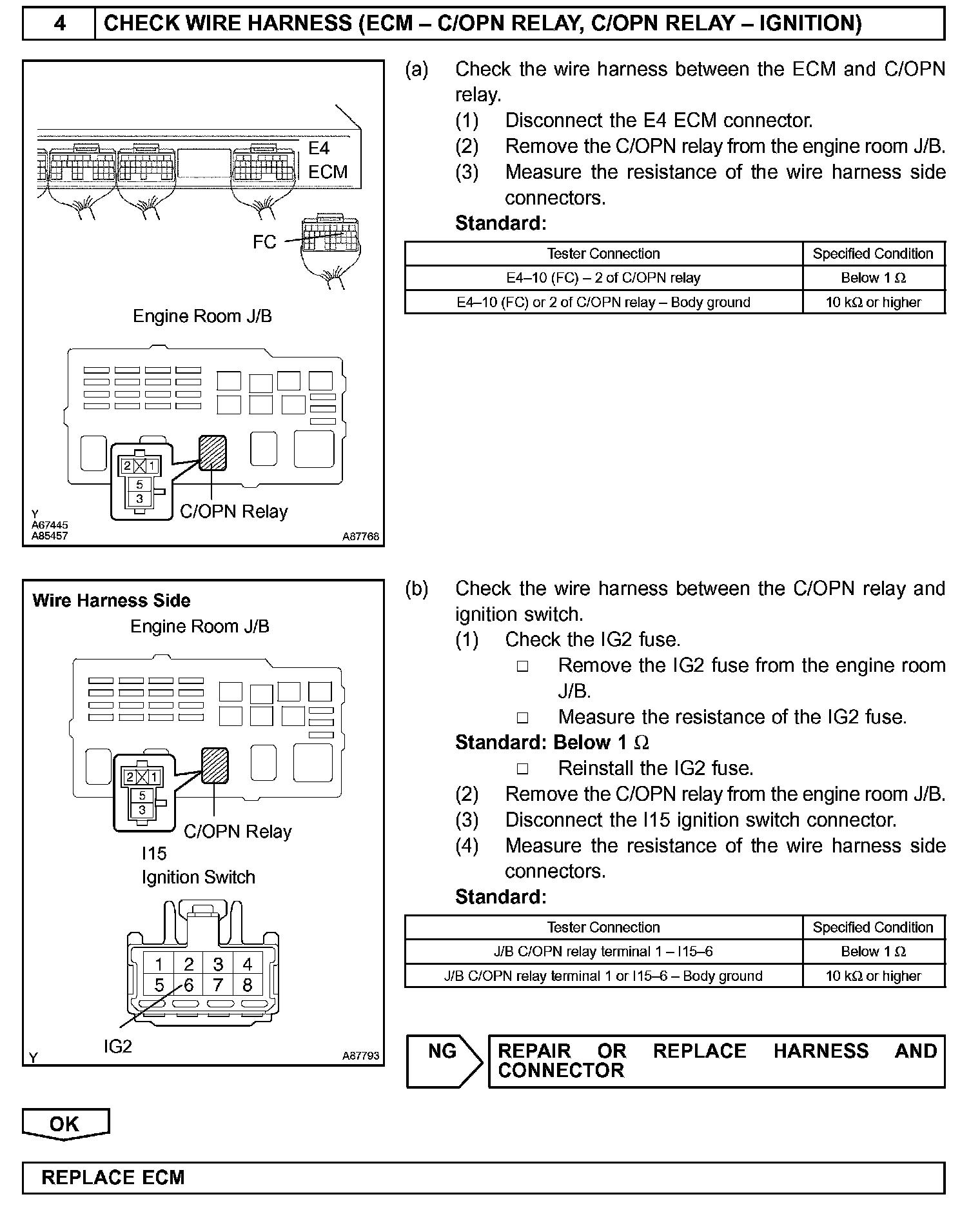 While the NE signal is generated and the engine is running, the ECM keeps Tr ON (C/OPN relay ON) and the fuel pump also keeps operating.