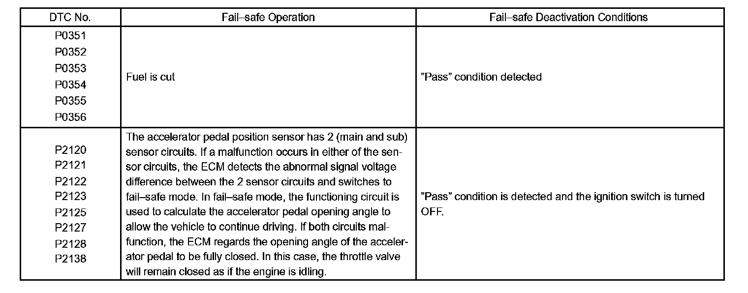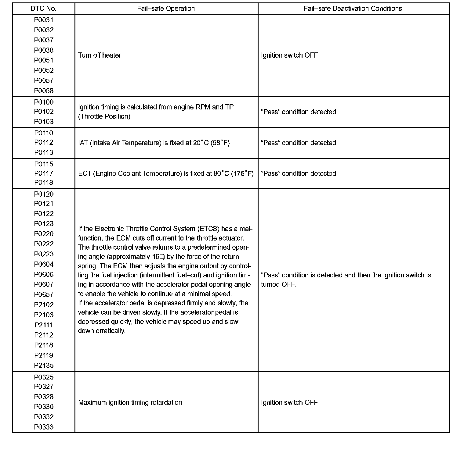 If any of the following codes are recorded, the ECM enters fail-safe mode.