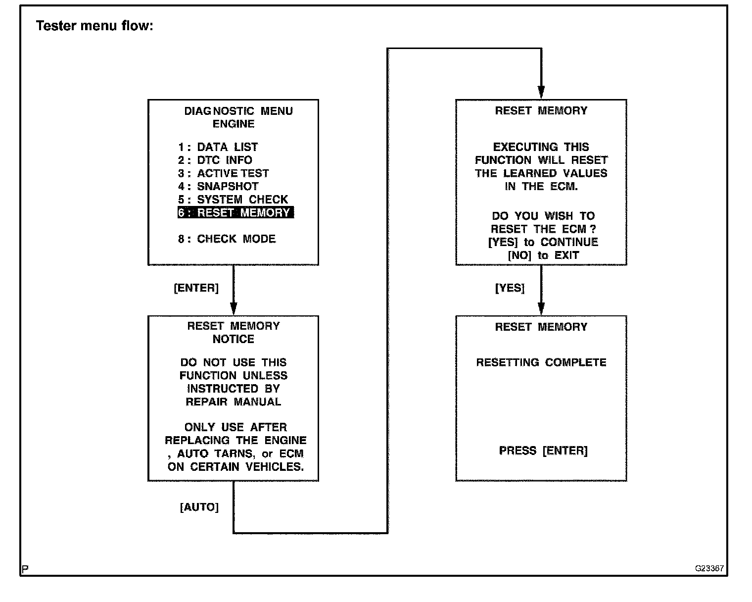 CAUTION: After performing the RESET MEMORY, be sure to perform the ROAD TEST.