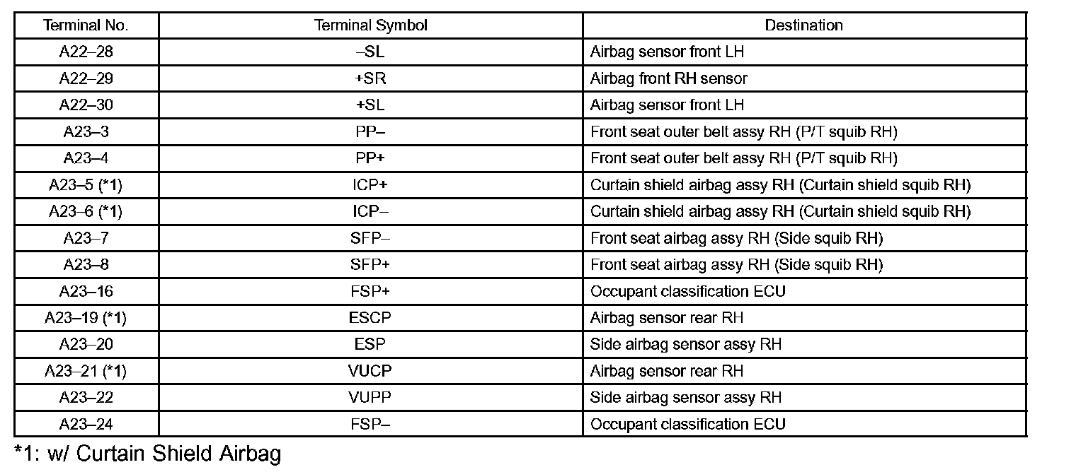 Terminal Of Control Module/Pinouts - Airbag Sensor Assy Center Part 1: