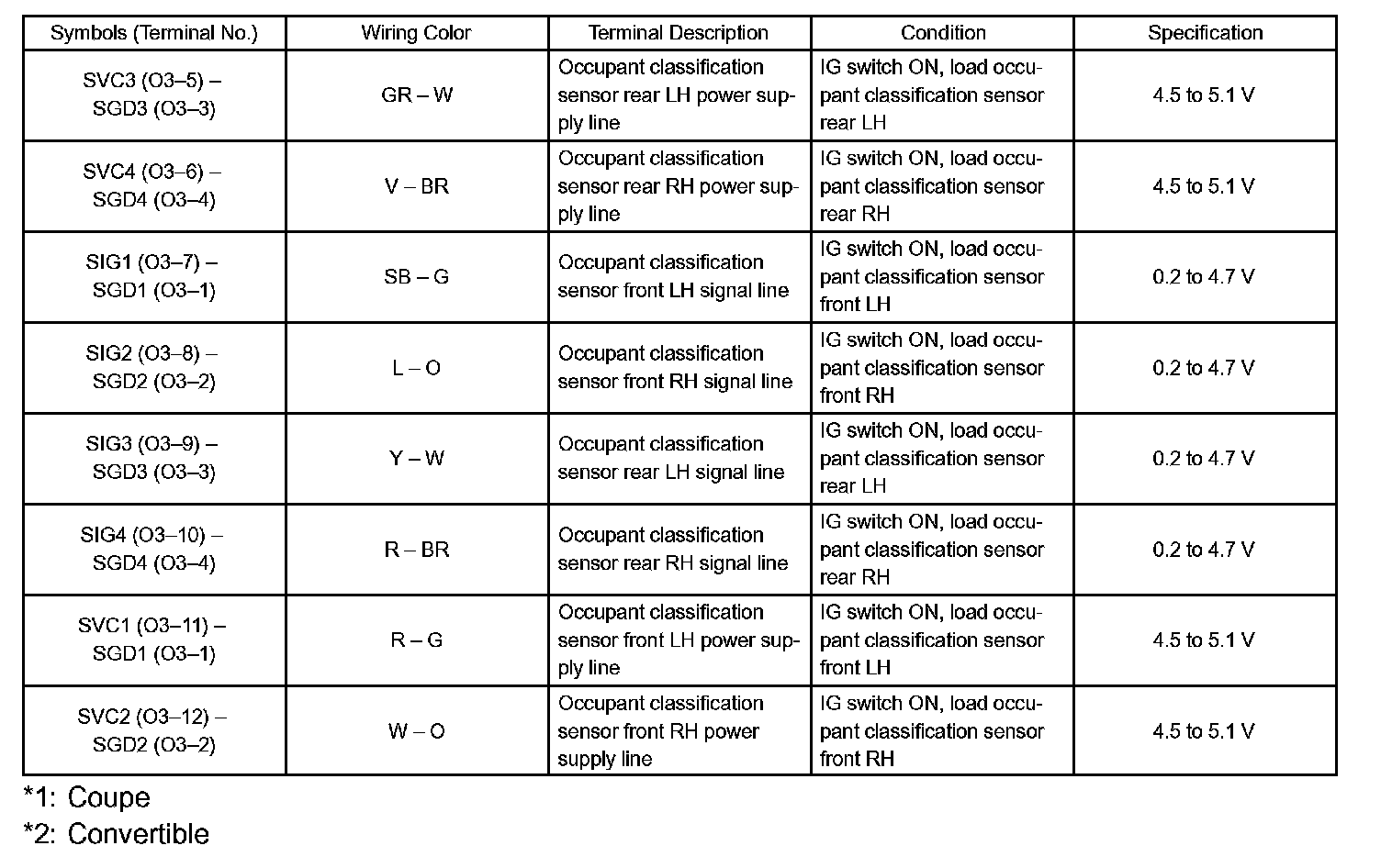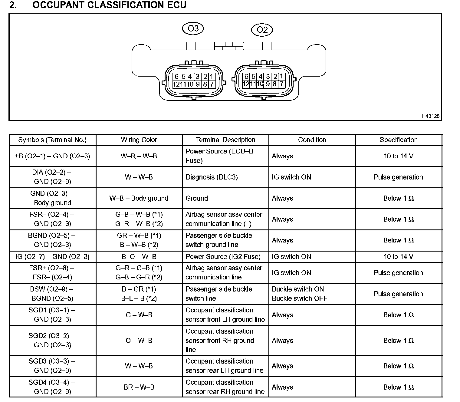 Terminal Of Control Module/Pinouts - Occupant Classification ECU Part 2: