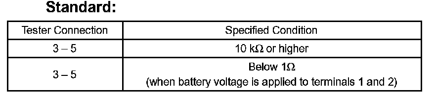 If the result is not as specified, replace the relay.