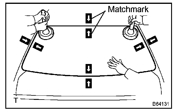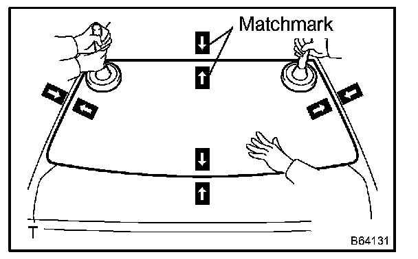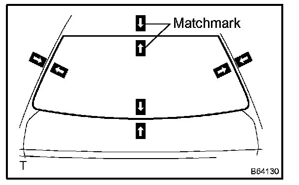 d. Place matchmarks over the back window glass and vehicle body on the locations indicated in the illustration.