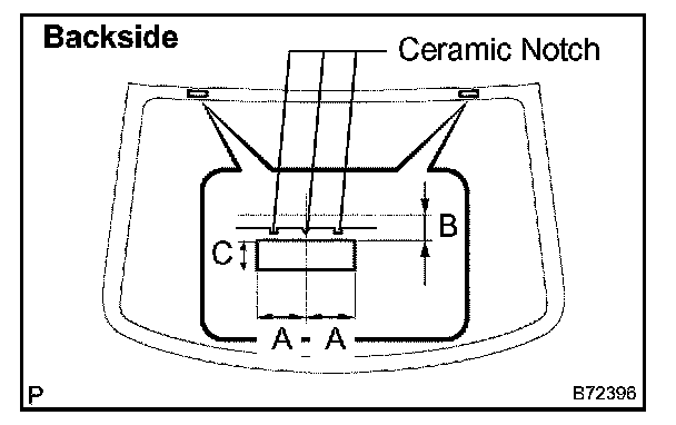 3. Apply adhesive to the back window glass as shown in the illustration.
