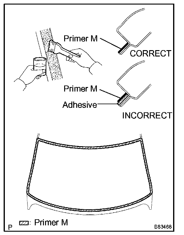 a. Using a brush or sponge, apply Primer G to the contact surface of the back window glass.
