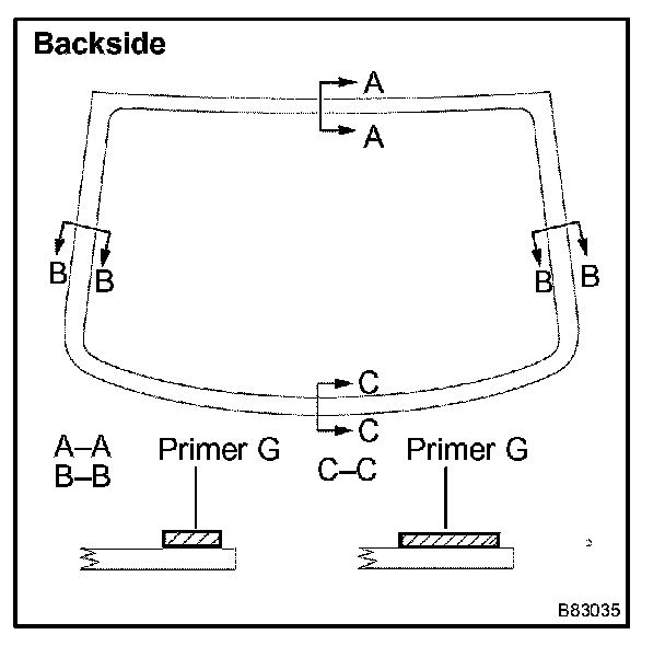 c. Using a brush or sponge, apply Primer G to the contact surface of the back window glass.