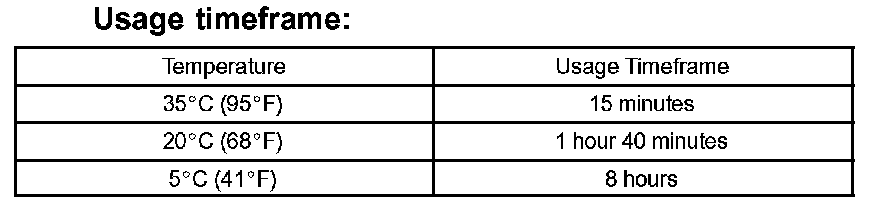HINT: After cutting off the tip, use all adhesive within the time written in the table below.