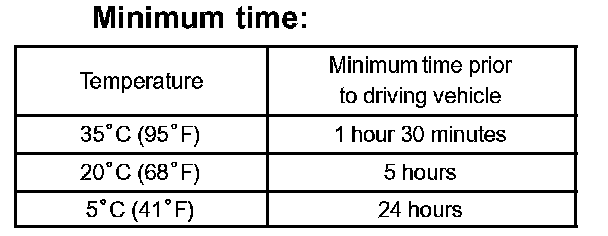 NOTE: Do not drive the vehicle for the amount of time written in the table.