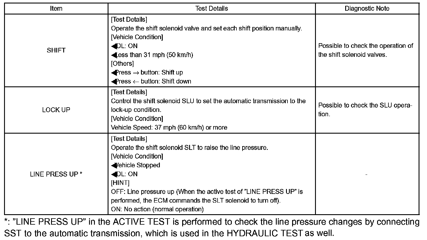 HINT: The pressure values in ACTIVE TEST and HYDRAULIC TEST are different from each other.