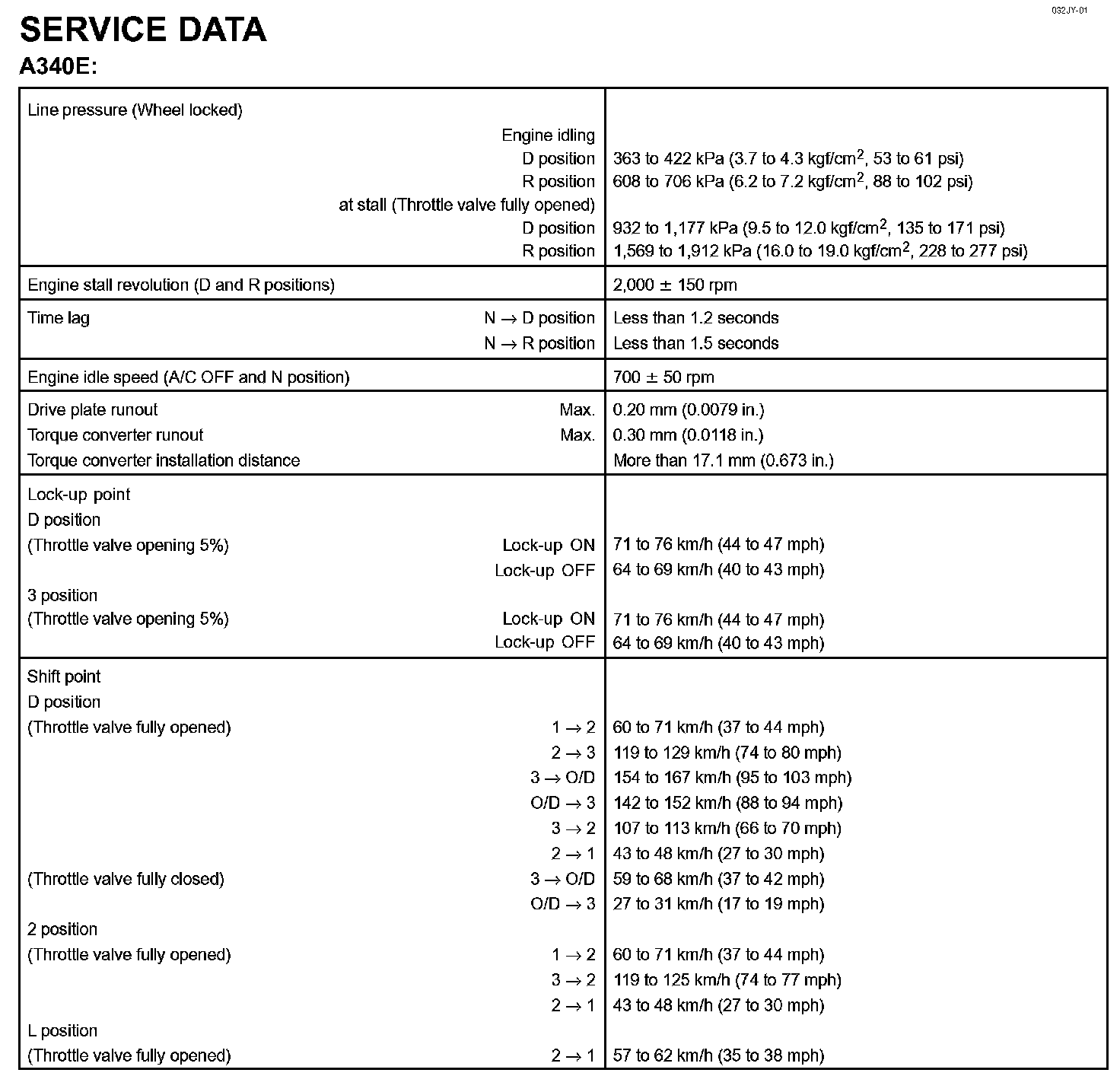 Automatic Transmission/Transaxle - Service Data: