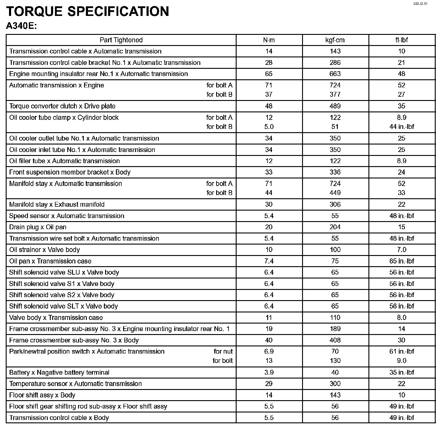 Automatic Transmission/Transaxle - Torque Specification: