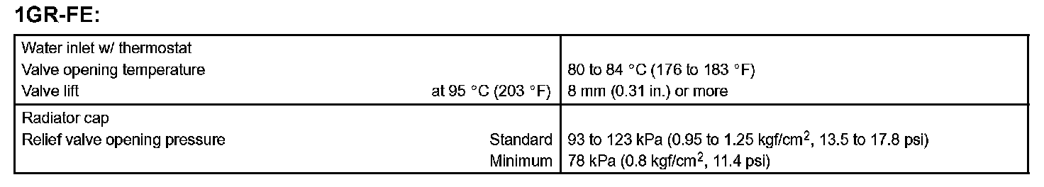 Cooling - Service Data: