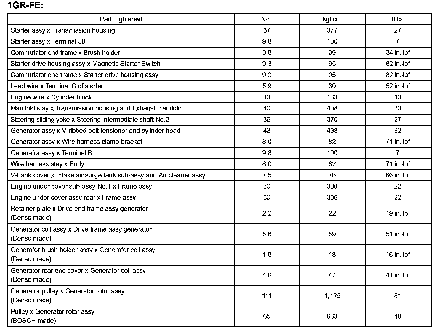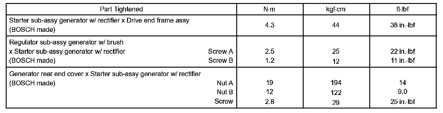 Starting & Charging - Torque Specification Part 1: