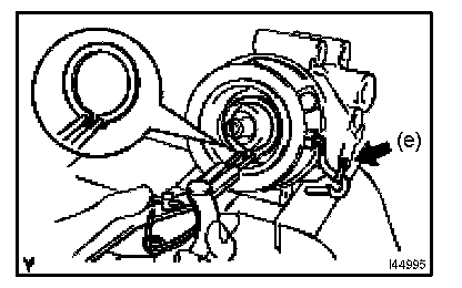 f. Using SST, remove the snap ring and magnet clutch stator.