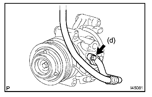 d. Install the suction hose sub-assembly onto the compressor and magnetic clutch with the bolt.