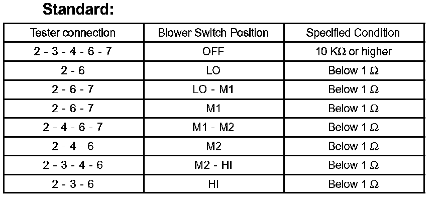 1. Using an ohmmeter, measure the resistance and check the results in accordance with the values in the table