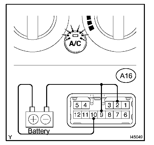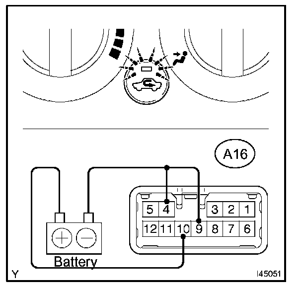 1. Apply battery voltage (13.5V) across terminals 10 (IG) and 9 (GND).